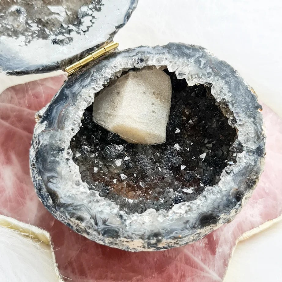 Introducing the Agate Jewellery Box, a unique and stylish way to store your precious jewellery. Crafted from natural agate stone, this box is sure to make a statement in any home.